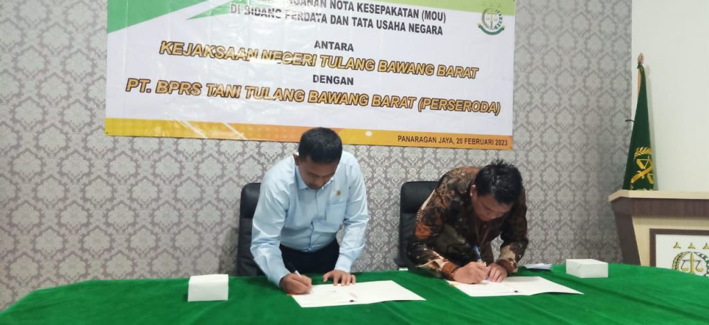 Posted on February 22, 2023 by bprs taniPENANDATANGANAN NOTA KESEPAKATAN (MOU) DI BIDANG PERDATA DAN TATA USAHA NEGARA ANTARA KEJAKSAAN NEGERI TULANG BAWANG BARAT DAN PT BPRS TANI TULANG BAWANG BARAT (PERSERODA) Panaragan Jaya, 20 Februari 2023